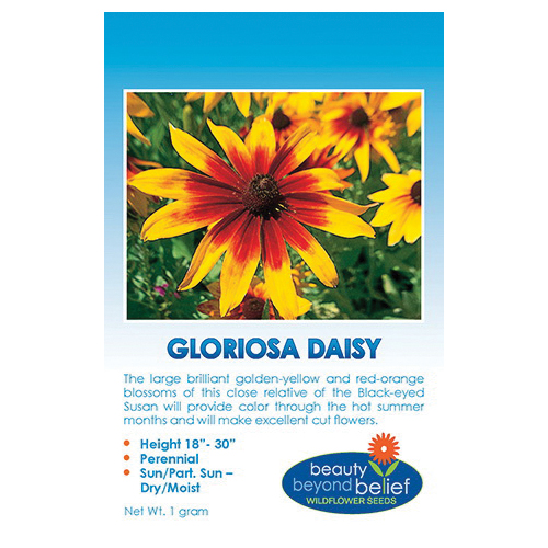 The large brilliant golden-yellow and red-orange blossoms of this close relative of the black-eyed Susan will provide color through the hot summer months and will make excellent cut flowers. Large 4 in blooms with maroon centers surrounded by rays of yellow and red petals, this species will flourish with little moisture in the full sun and is best used as a specimen plant.