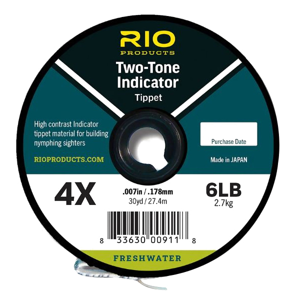 Opaque two tone 8 in sections of fluorescent pink and fluorescent chartreuse or black and white color changing tippet with highly defined hard color changes. These color breaks create maximum contrast to allow anglers to get visual cues when tight line nymphing. The excellent indicator material for building sighters for European Style Nymphing. A hi-vis, two colored nylon tippet, with color changes every 8 in, ideal for nymphing and indicators.