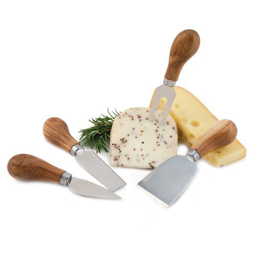 The rustic farmhouse gourmet cheese set is a beautiful collection of four assorted cheese tools. With stainless steel blades and rustic elegant acacia wood handles, this handsome set is perfect for entertaining, gift-giving and picnics.