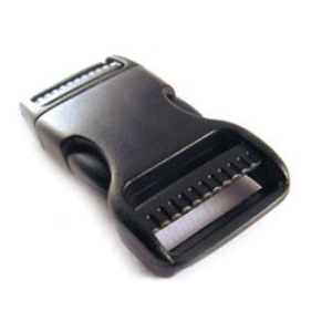 Bulk-Strap Side Squeeze Buckle, Specifications: 1-1/2 in Size, Co-Polymer, Black, Dimensions: 3 in L x 1.8 in W x 0.5 in H