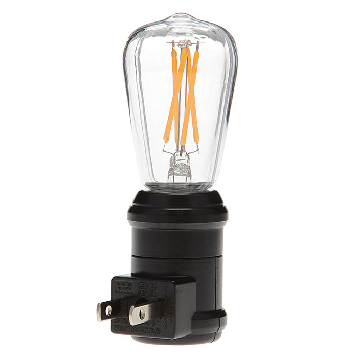 The Edison night light features an alluring squirrel cage filament design built in a vintage teardrop shape bulb. The energy-efficient LED bulb casts a relaxing, warm and soft glow to create a cozy and homey ambiance in your home. The automatic dusk to dawn control saves money and energy by operating the light only in the dark.